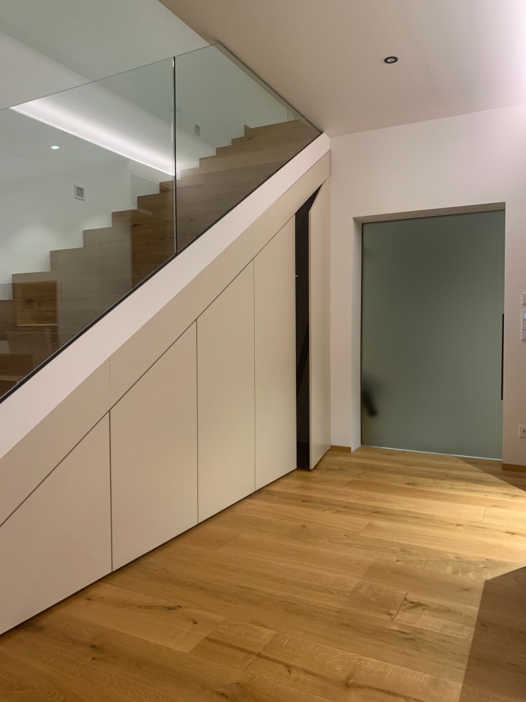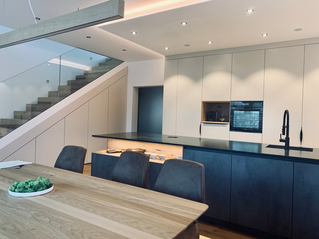 Was uns richtig „daugt“ ist unser Smart Home. Wir haben sicher nicht High End, aber schon einige kleine Besonderheiten. Wir können zB das gesamte Licht und unsere Beschattungen über das Handy steuern, können mit unserem Handy auch wenn wir zB in der Arbeit sind die Haustür öffnen oder über die Sprechanlage kommunizieren und verschiedene Lichtszenen automatisieren. Viele sagen zwar ‚wir brauchen kein Smart Home‘ aber für mich gibt es eigentlich nur Vorteile. Wüsste nicht warum man in einem neuen Haus das nicht einbauen sollte. Wir haben das KNX Sytem mit Busch/Jäger Schalter.