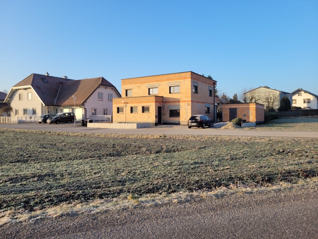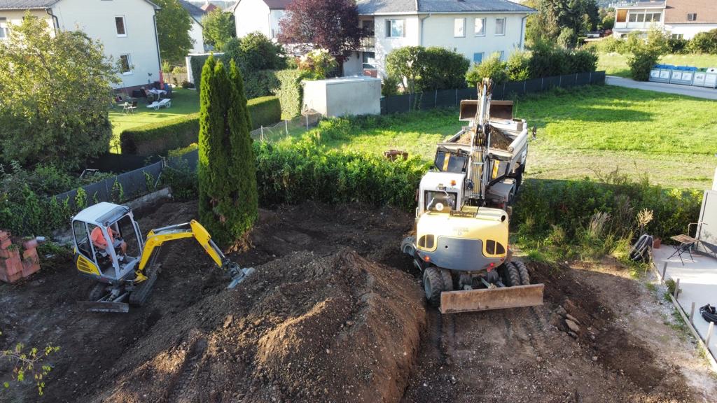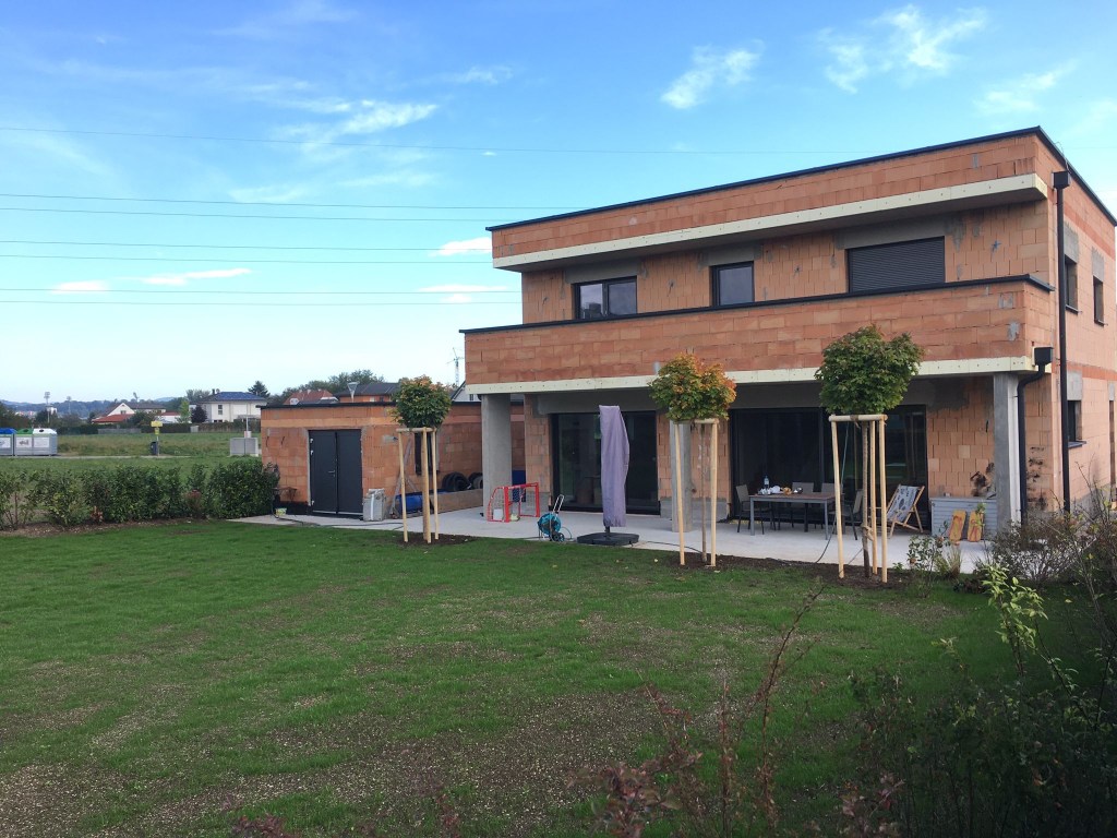 Wie ihr seht haben wir noch keinen Aussenputz dafür seid Ende Sommer einen wunderschönen tollen Garten. In einer Nacht und Nebelaktion wurde der riesen Erdaushub durch eine Siebschaufel gerüttelt und aufgeteilt. Noch am selben Tag haben wir selber den Rasen angesamt. Da es Ende Sommer das perfekte Wetter für den Anbau hatte, wurde er, wie ich finde, ziemlich schön. 🏡🧑🏼🌾