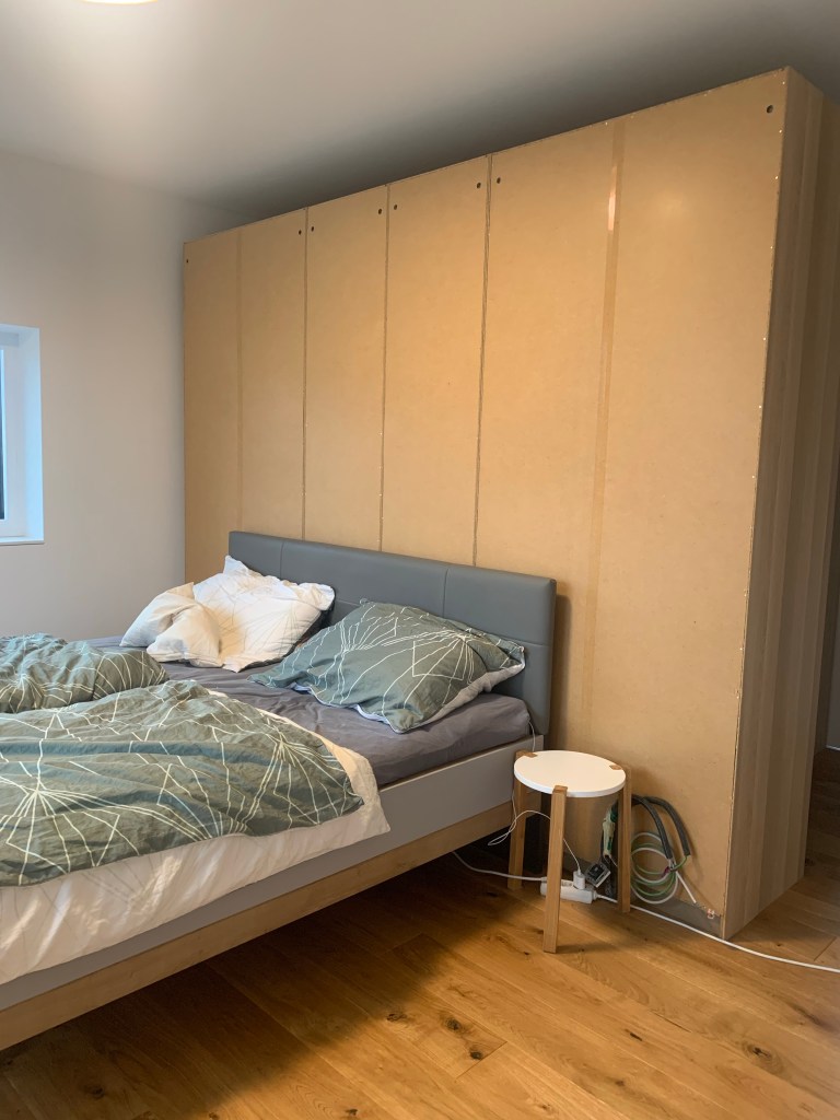 Man sieht: Einfach eine Baustelle weil wir gesagt haben „das machen wir im nachhinein“ aber glaubt mir: MAN MACHT NICHTS IM NACHHINEIN!!! Es ärgert mich so sehr dass wir nicht gleich einen ordentlichen Schrankraum gemauert haben sondern jetzt die Rückwand irgendwie verkleiden müssen und dort wieder eine größere Baustelle anfangen müssen. Mein Tipp: plant alles vor der Bauzeit und macht es während der Bauphase so wie ihr es haben möchtet🙏🏻